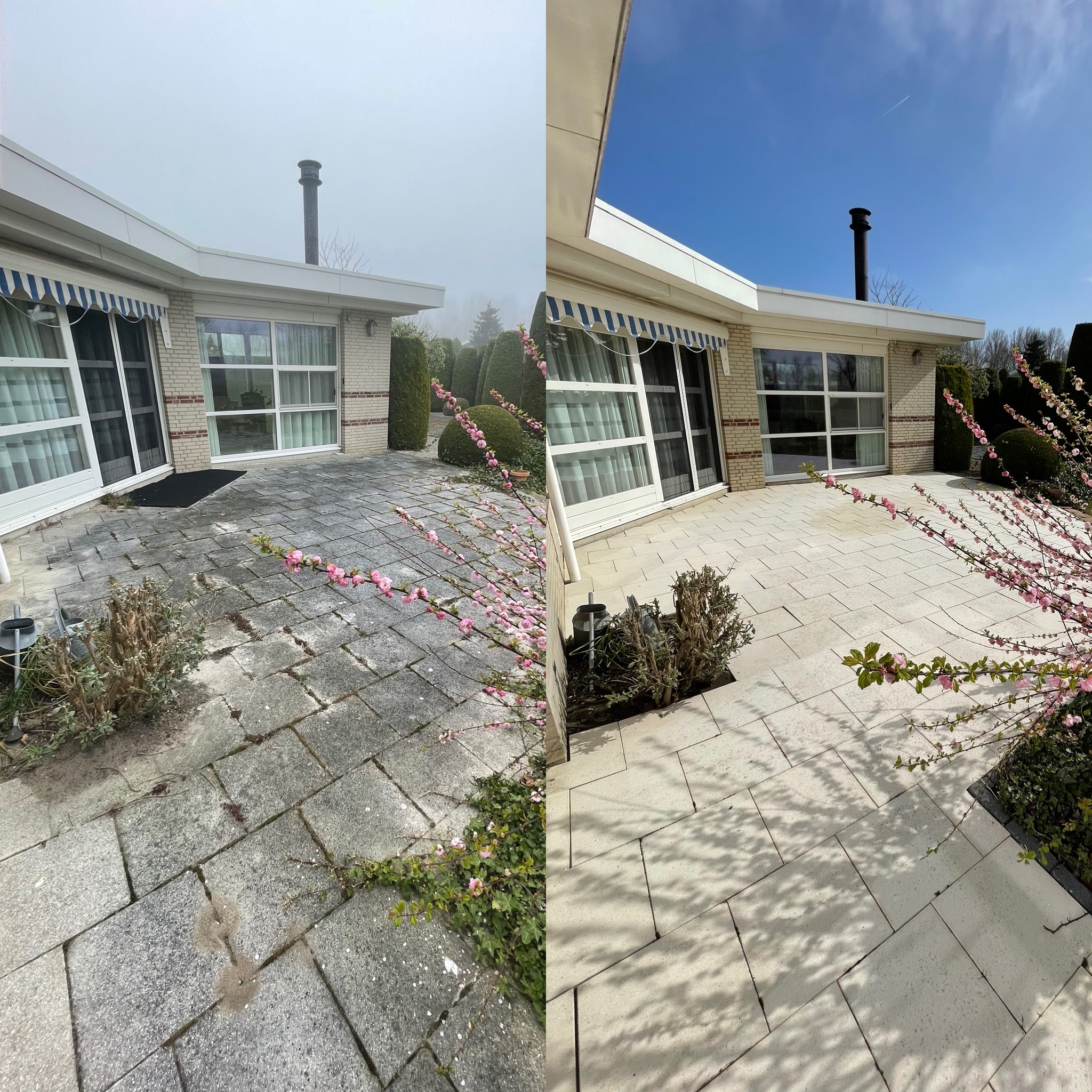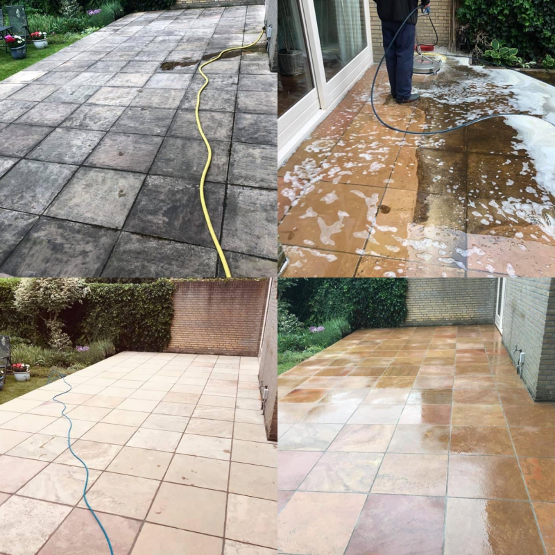 Door de hoge temperatuur van de stoom, 200°C, en een werkdruk van 200 bar, is dit de ideale manier voor een stralend terras.